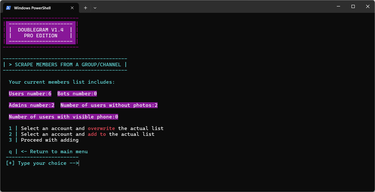 Per estrarre membri da un gruppo o canale, devi essere membro di quel gruppo o canale con l'account che stai utilizzando per estrarre. I membri del gruppo o canale da cui stai estraendo devono essere visibili per te. Se non riesci a vedere i membri del gruppo o canale, non sarai in grado di estrarli.